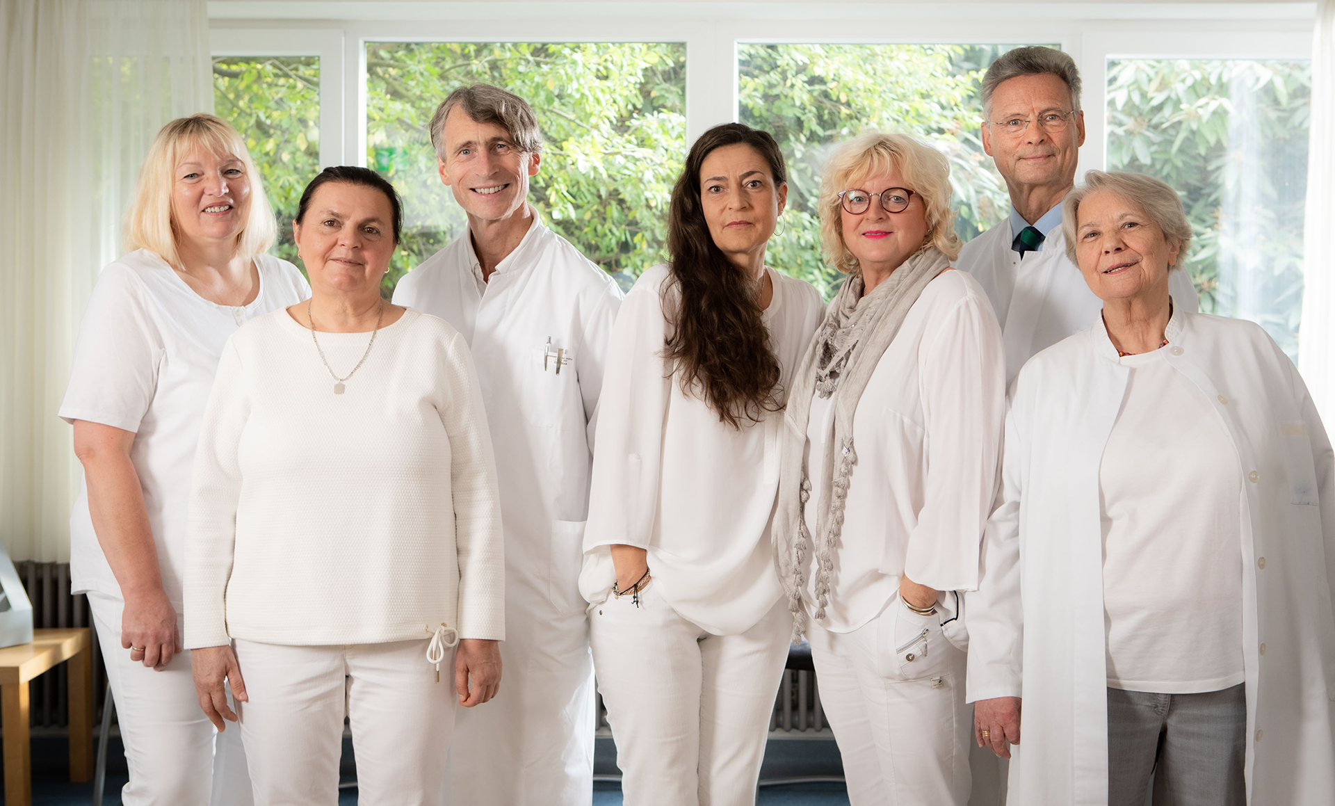 Seit Bestehen der HNO-Praxisklinik bilden wir mit unserem medizinischen Fachpersonal ein festes Team und haben Frau Kastning 2020 dazu gewonnen. Auf dem Foto von links nach rechts: